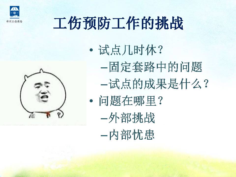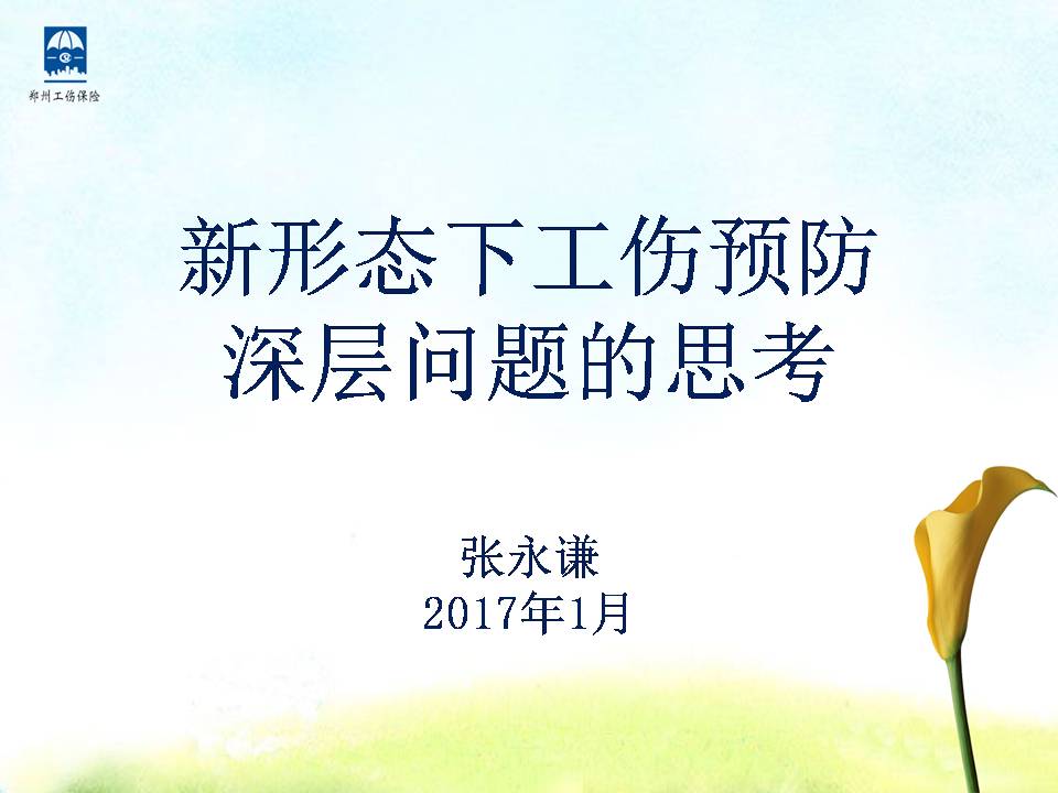 张永谦郑州市社会保险局工伤预防处处长。第二届人力资源高峰论坛特邀讲师在分论坛三工伤专场演讲PPT。